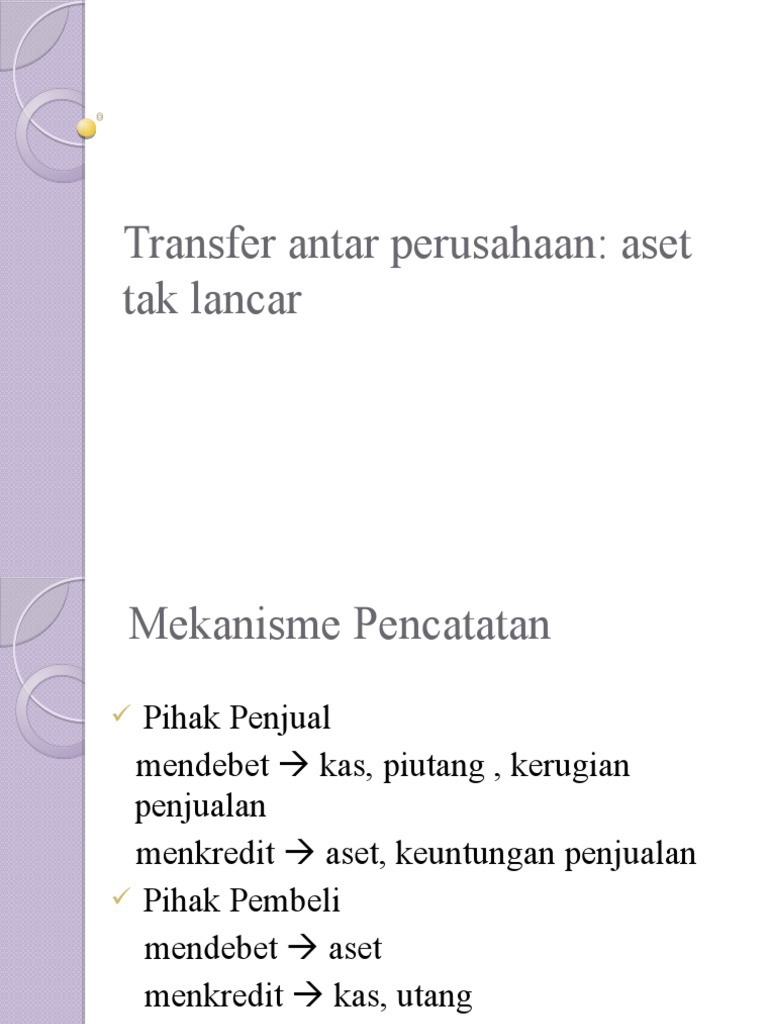 Pertanyaan tentang transfer antarperusahaan aset tidak lancar. Maybe you would like to learn more about one of these? We did not find results for: Check spelling or type a new query.